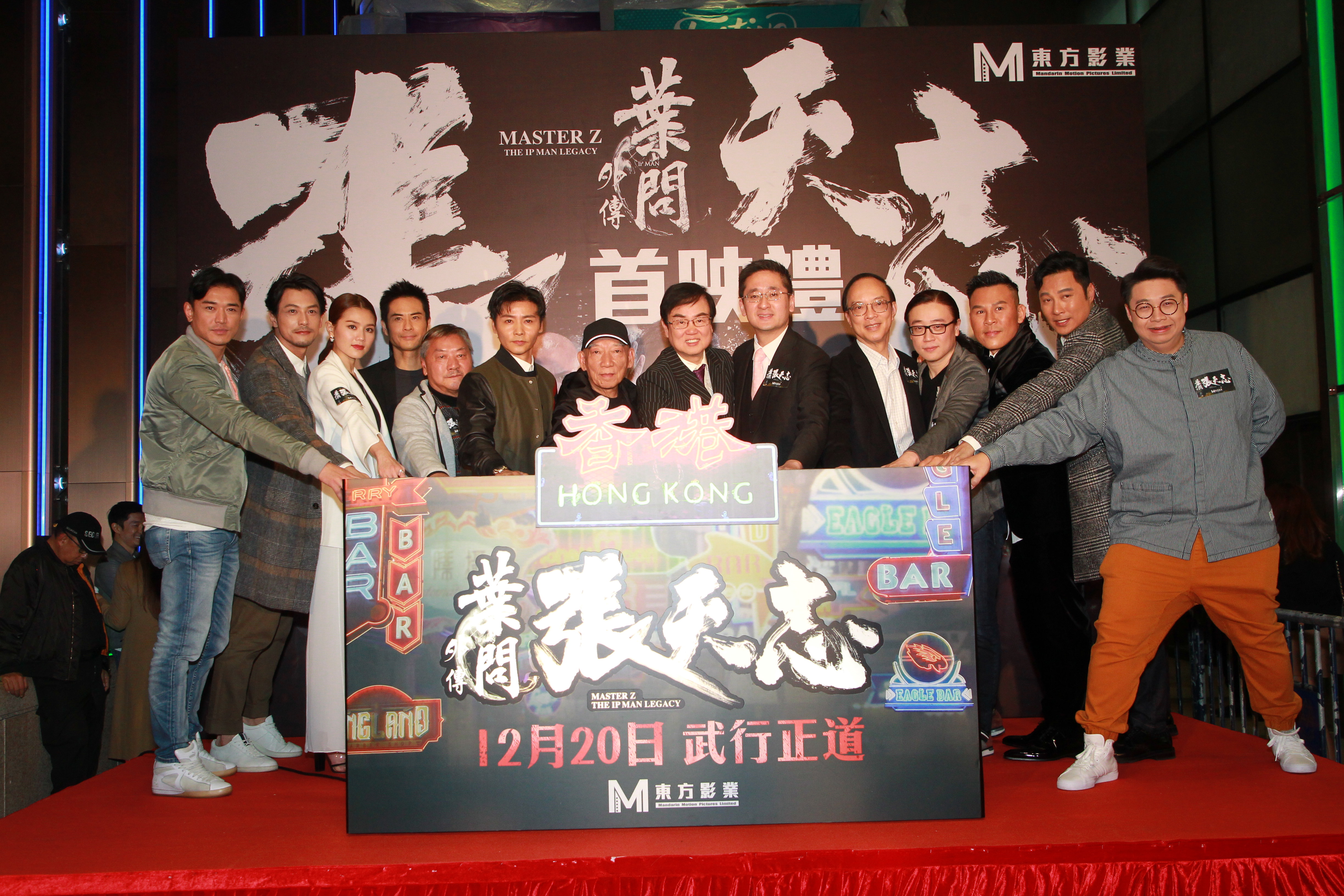 16日晚,电影在铜锣湾Cinema City JP举办首映礼暨颁奖礼,监制黄百鸣、导演袁和平、“袁家班”代表袁信义、张晋、郑嘉颖、周秀娜、谭耀文、释彦能、柏天男、何远东、黄致豪均到场支持。
