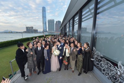 阿娇和赖弘国今年5月已在洛杉矶举行婚礼,她好姐妹容祖儿、蔡卓妍(阿Sa)、郑希怡(Yumiko)、经纪人霍汶希(Mani)、赌王千金何超莲等皆到场祝贺,今她选在香港一家餐厅内包场举行注册仪式。