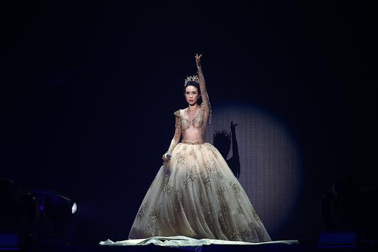 她开场戴皇冠、着金缕衣纱裙献唱《如初之光》,随后褪去纱裙带来组曲,三连“脱”让薄纱装下的曼妙曲线一览无遗,成功炒热气氛。她不断大秀104公分逆天长腿,更展现琴艺,演唱改编自“高山青”的《青山在》时,身穿好友高慧君、高蕾雅姐妹准备的邹族传统服饰,是台北站福利之一。