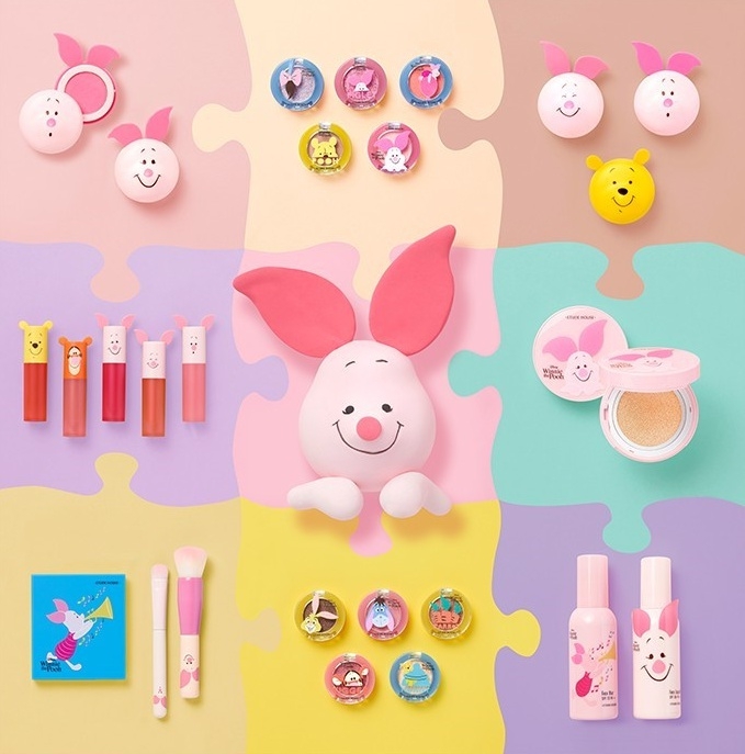 Etude House与小熊维尼联名推出的彩妆系列,包括眼影、腮红、气垫粉饼等!