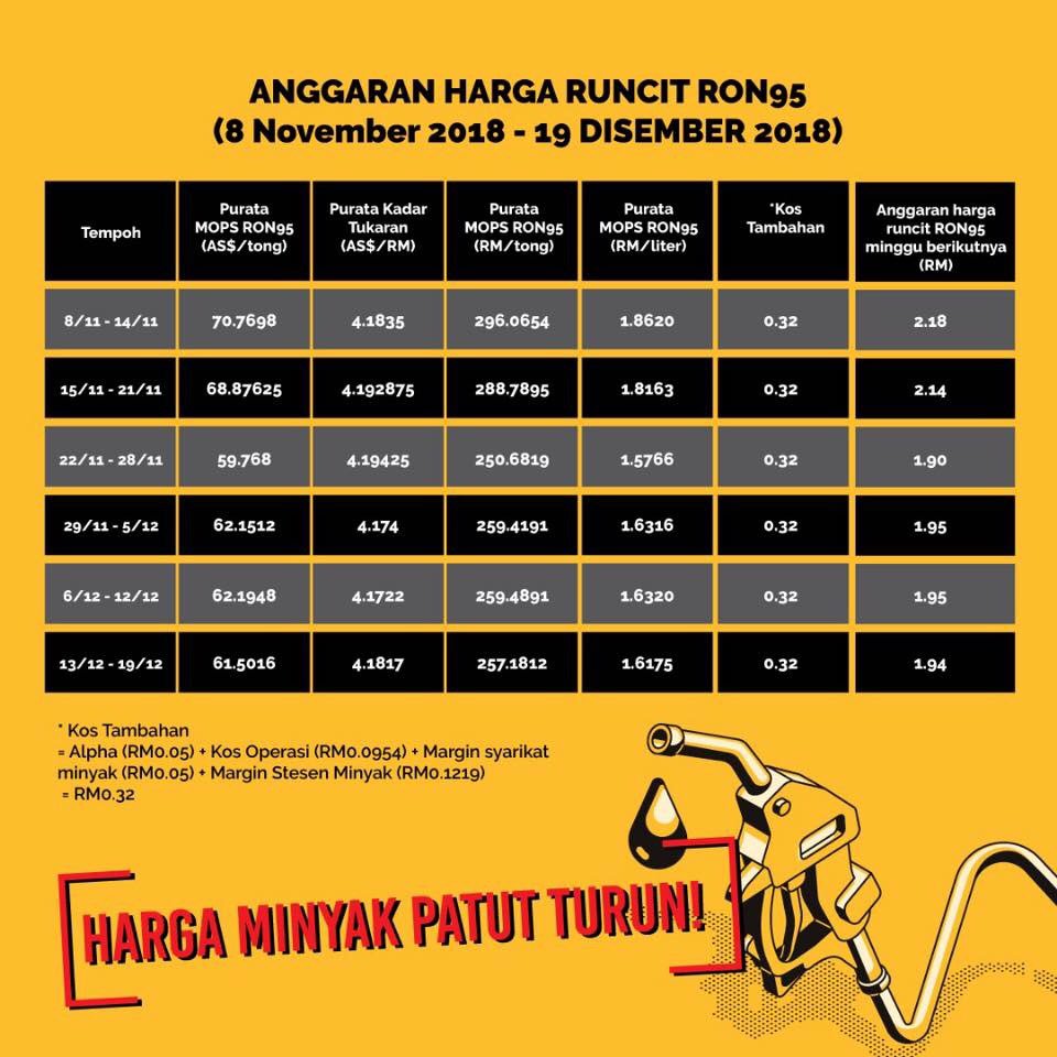 他今日在面子书贴文中上载一份列表,指国人在过去6个月所支付的燃油价格比市场高。