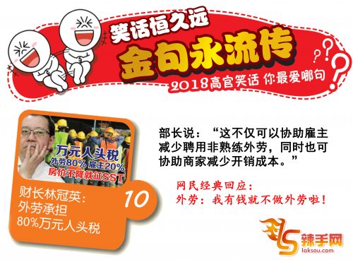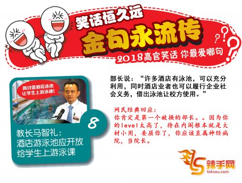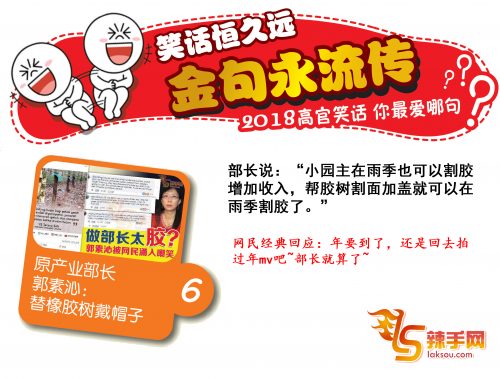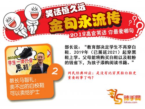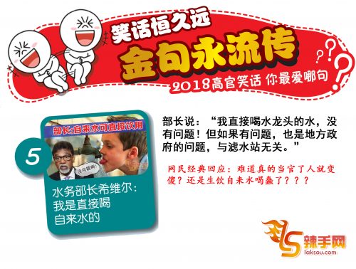 笑话恒久远,金句永流传。感谢2018,留下了许多令人不得不写个“服”字的高官金句笑话。《辣手网》整理出最经典的十句,你最爱的,又是哪句?