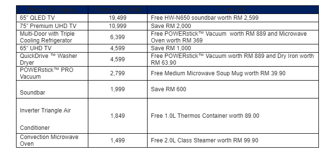新年新气象,如果你正打算换套全新的家电,这里有好消息要带给大家!那就是马来西亚三星电子,即日起至2月28日,将会为所有忠实的顾客提供促销折扣,并且送出高达RM2599的礼品,包括音响、Thermos食品保温容器、微波汤杯等!