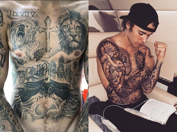 比伯一向是出了名的刺青爱好者,他从头到脚的肌肤已经几乎都被刺青填满了,过去他也曾自爆,自己上半身大部分的刺青图都是一次过完成,当时刺青师足足花了100个小时来完成,他对成果也感到非常满意:“每一个都不曾让我后悔,我真的很爱艺术,我已经把我的身体变成一张油画,这真的太好玩了!”