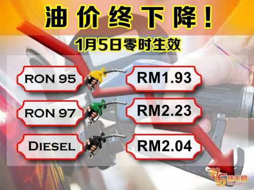 (吉隆坡4日讯)财政部宣布,所有燃油价将从明日(1月5号)零时零分起下调!