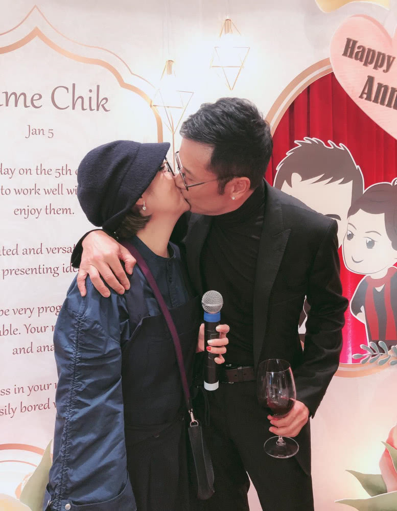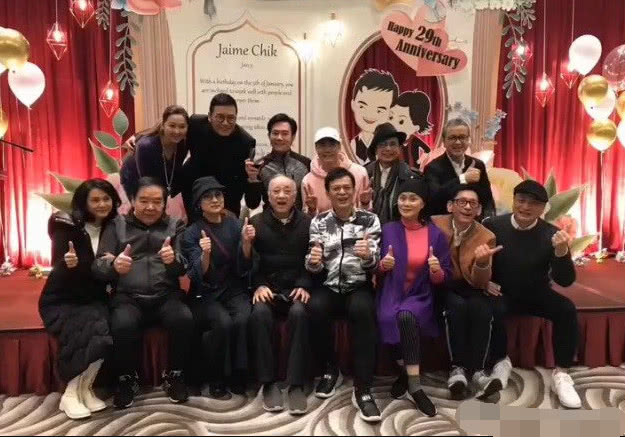 当晚有陈百祥、乐易玲、陈山聪、吴卓羲、林峰、郑则仕、佘诗曼、谭咏麟、卢海鹏、黄日华、彭健新等等在众人包围之下的三哥和三嫂就特别开心,三嫂还摆出剪刀手姿势,而佘诗曼就搂着三嫂。从后面的背景看到当天布置得非常有心思,不仅庆祝三嫂生日,还写出他们夫妻俩结婚29年。