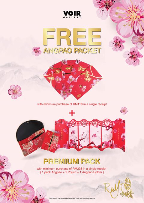 如果你想获得红包封,只需在VOIR单张收据消费满RM118即可!此外,消费满RM238以上的朋友,则可获得红包加封套,以及精美丝绸套包!这款非常值得大家收藏喔!