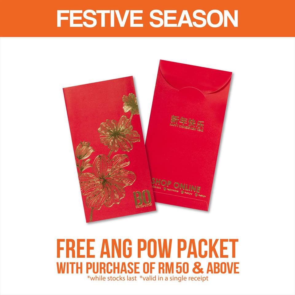 为了回馈顾客的支持,Brands Outlet将免费送出红包封和购物袋!如果你在Brands Outlet,单张收据消费满RM50,即可获得免费的红包封;消费满RM150,则可获得免费的新年精美购物袋!
