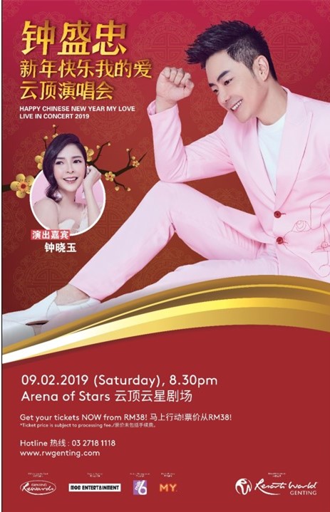 【至辣好康】(送票)马来西亚知名贺岁专辑歌手钟盛忠将于2019年2月9日(星期六)晚上8时30分,携手妹妹钟晓玉,在云顶云星剧场大舞台与大马歌迷一同迎春接福,共度一个不一样的猪年。喜欢听钟盛忠与钟晓玉贺岁专辑的朋友千万别错过这场充满喜庆的音乐盛宴。