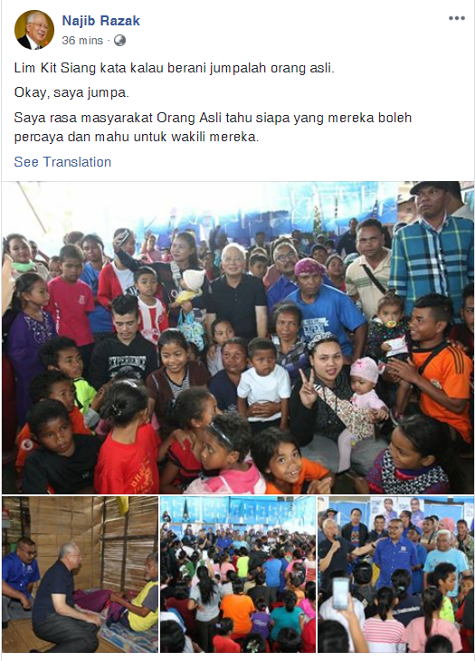 数小时后,纳吉再度在他的面子书上载他与原住民的合照,指他已经“遵照”林吉祥的指示,与原住民见面了。