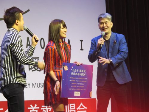 当被主持人问到老板邓智彰为何会签下自己时,韩晓嗳自嘲说:“老板应该是刚好签了就这样咯。。”,后来邓智章上台亲自揭露原因表示她有更大的潜力和潜在,也希望能通过音乐让韩晓嗳更上一层楼,突破自己有更好的表现。