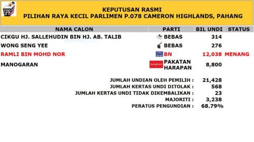 他说:“国阵在金马仑补选的多数票从过去的300多张提高至3238张,证明了过去9个月希盟的执政已经令人民怨声载道,甚至是不满政府。”