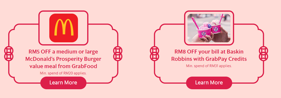 Grab推出新年大促销 30 Jan , 2019 | 吃喝玩乐 配合新春佳节的到来,Grab推出新年促销,你可以RM0.88购得价值RM100的礼包,非常划算! RM0.88 Prosperity Pack礼包包括Baskin Robbins折扣、HERMO礼劵、鹿角巷折扣、鱼生优惠、McDonald‘s发财汉堡包优惠等!有兴趣的朋友,只要打开Grab应用程序,然后点击Notification即可看到Prosperity Pack选项啦! 另外,你也有机会赚取更多积分,如:只要消费RM1即可获得20X GrabReward Point! 分享