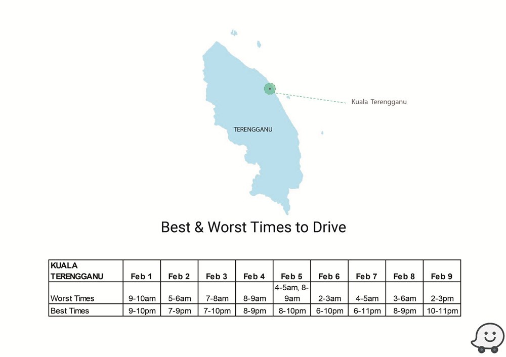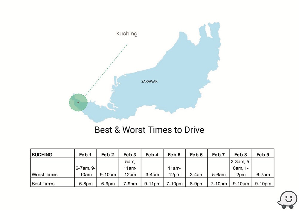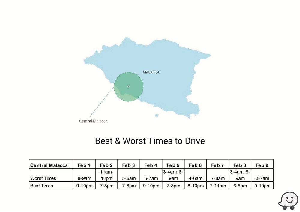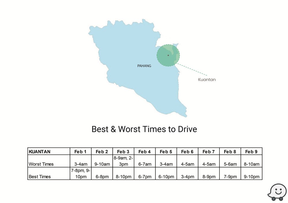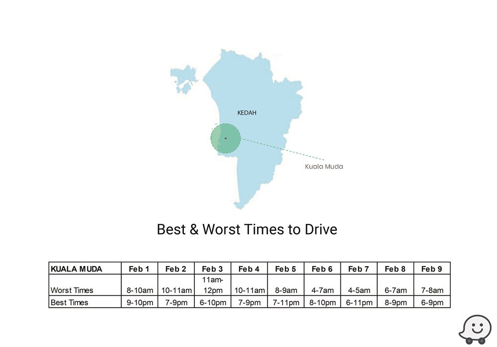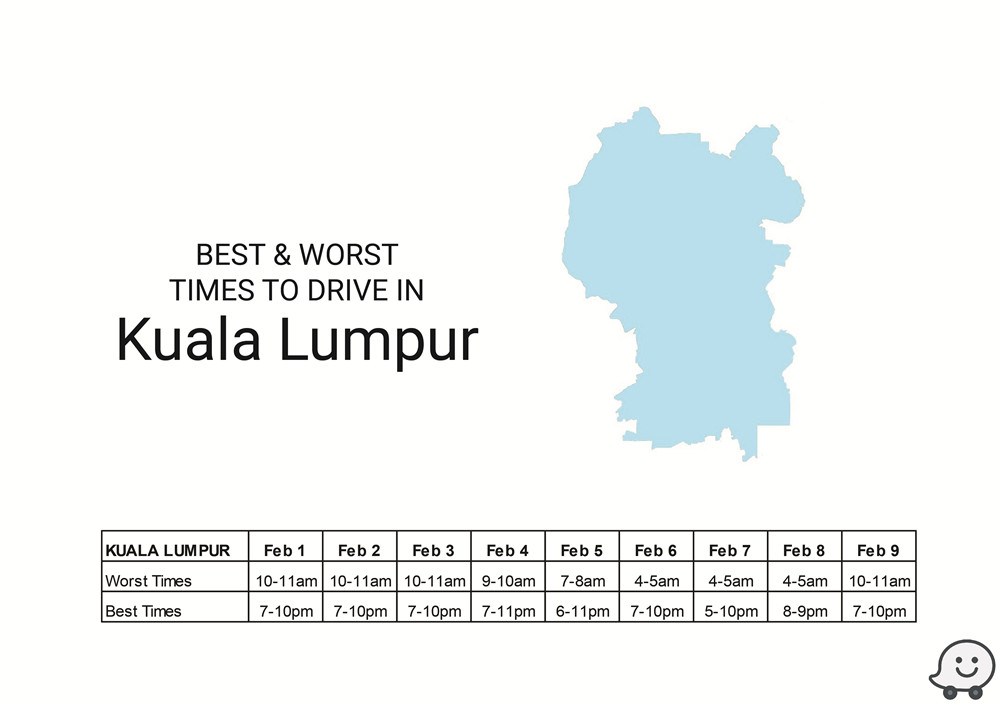 新年回乡攻略!Waze交通预测报告助你避开高峰时段! 1 Feb , 2019 | 吃喝玩乐 农历新年回乡,什么时段最佳?Waze释出多个城市的交通预测报告,助你避开塞车时段! 根据去年数据,Waze预测今年最佳/最糟的驾驶时间,地区包括Batu Pahat、Johor Bahru、Melaka Central、Kinta、Larut & Matang、Kuching、Kota Bharu、Kuala Muda、Kuala Terengganu、Kuantan等! 除此之外,Waze也提供了KL地区的交通高峰与流畅时段予那些新年期间,依然会留在雪隆区的朋友! 分享