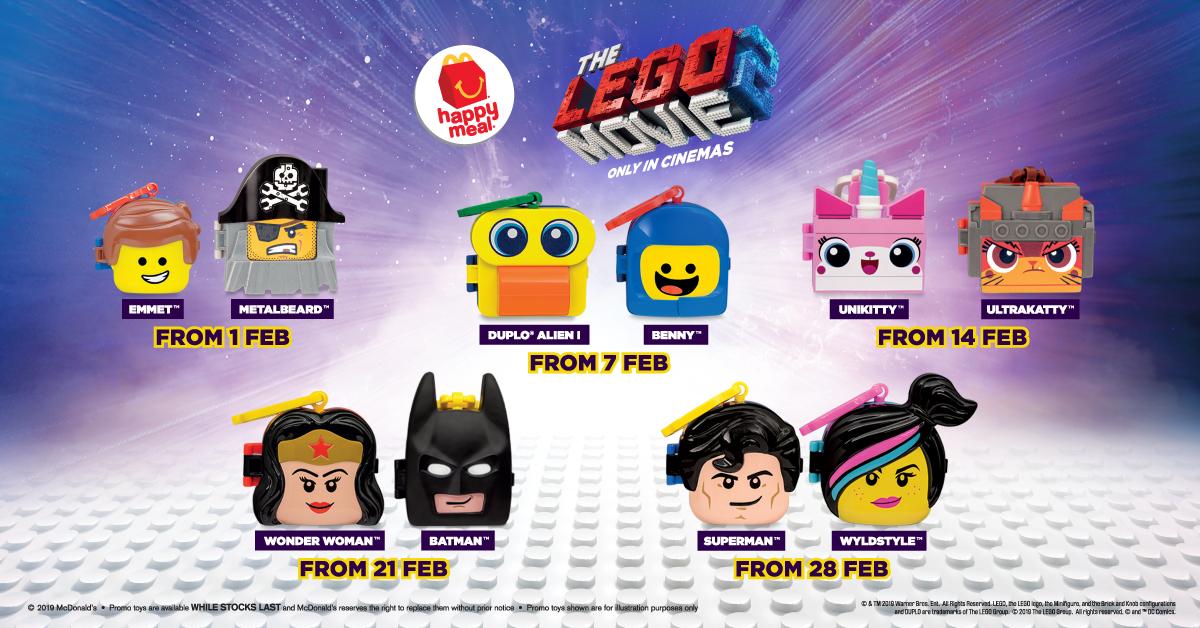 《The Lego Movie 2》即将在大马上映,麦当劳配合电影推出系列乐高玩具!麦当劳会在接下来的5个星期内,分别送出10种不同角色的玩具,包括:
