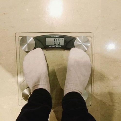 青峰经常透过社群网站和粉丝互动,分享生活点滴,他17日在个人社交平台大方晒出量体重的结果,只见照片中,他穿着白色袜子入镜,露出一小截的黑色裤管,而体重计的数字部分竟只呈现出“0”,让他看了傻眼直呼:“这结果…像是被体重秤喊了一句‘你不是人’!!!”