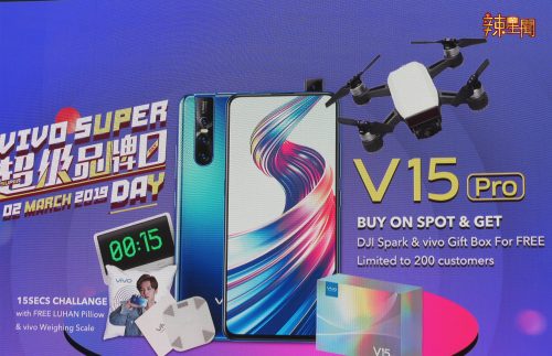 vivo 3月4日会在Sunway Pyramid举办V15 Pro超级品牌日!凡于现场购买V15 Pro的首200位用户,将可获得一台DJI Spark无人机!另外,V系列V15将在3月18日推出,目前价格尚未公布!