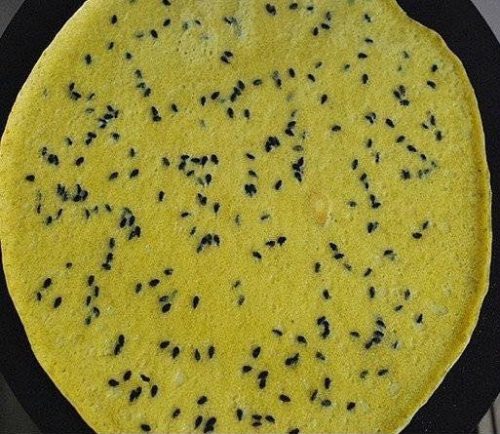 4.散入少许黑芝麻,彻底混合成均匀的面糊。