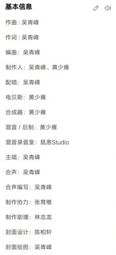 比李荣浩狠!吴青峰包揽新歌制作还自己画封面 1 Mar , 2019 | 娱乐前线 吴青峰新歌《蜂鸟》MV上线,有网友发现吴青峰不仅自己包揽了这首歌的制作,就连封面上的那只蜂鸟也是他自己画的,调侃称:“吴青峰比李荣浩还狠。” 吴青峰新歌基本信息 吴青峰新歌封面 李荣浩新歌基本信息 此前,李荣浩的歌曲《年少有为》从作词作曲、到后期制作竟然都是李荣浩亲自操刀,引起热议,网友调侃称“谁也别想赚李荣浩一分钱”。 分享