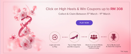 配合国际妇女节到来,Huawei特别推出优惠及”点击高跟鞋“有奖游戏,送出价值RM308的折扣劵!想购买Huawei手机的朋友,可不要错过这难得的机会了!