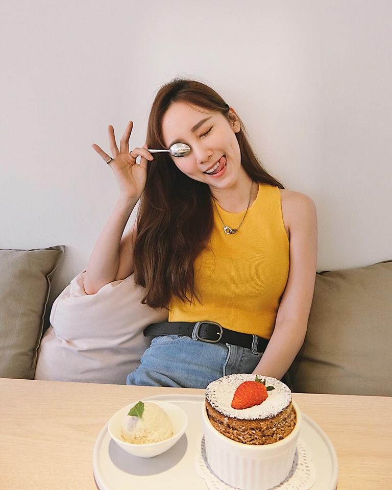 她上个月才PO此图并配文写:“我为了甜点而活 什么都能放弃,就是不能放弃你们”