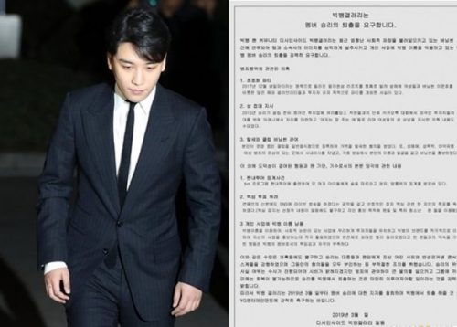 Big Bang的粉丝团发联署声明要求胜利退团。