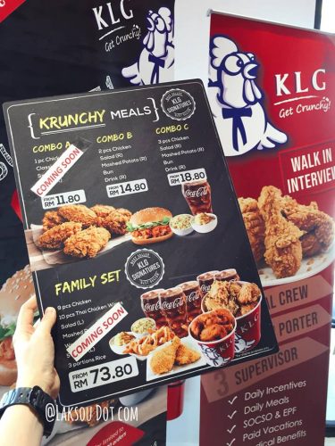 KLG提供的套餐选择众多,包括KLG汉堡、KLG鸡肉卷、KLG家庭套餐等!此外,KLG炸鸡口味选择有两种,包括泰式及胡椒!这里的炸鸡,吃起来酥脆多汁,味道也浓郁,很适合喜欢吃重口味的朋友!不过,比起KFC出售的价格,KLG的炸鸡稍微贵了一些!