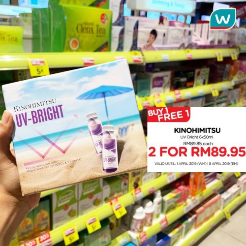 有好康!Watsons超多商品推出买一送一优惠 16 Mar , 2019 | 吃喝玩乐 有好康!Watons超多商品推出买一送一优惠!从化妆品、保养品、面膜、零食到个人用品等,全部都有哦!赶紧查看家里缺什么,然后去买吧! 这项优惠,从即日起至4月1日(西马);4月8日(东马),在全马分店进行!此外,使用Touch’n Go eWallet消费满RM50的朋友,也可获得额外RM8折扣,节省更多! 参与今次优惠的产品种类繁多,包括: 日期:即日起至4月1日(西马);4月8日(东马) 地点:全马分店 分享