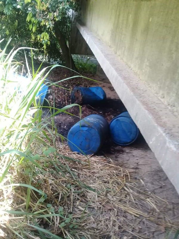 一名相信是居住在巴西古当附近的居民,是于本月14日在距离金金河约2公里处的森比浪河发现4桶被丢弃的蓝色塑料桶,这些塑料桶怀疑装有化学废料,遭不明人士丢弃桥底。