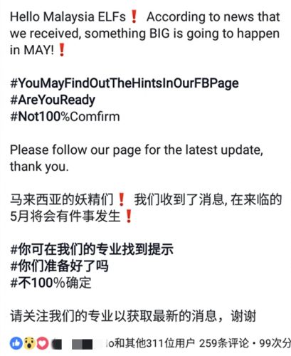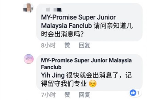 昨日MY-Promise Super Junior Malaysia Fanclub(大马SJ粉丝专业)在其粉丝专业公布消息说:“我们收到消息,在来临的5月将会有事发生”,虽然有明确表明“不100%确定”,但又耐人寻味的写“请关注我们专业获取最新的消息”,虽然没有明确说明,但这帖子一出立马引起所有大马ELF的热烈讨论!