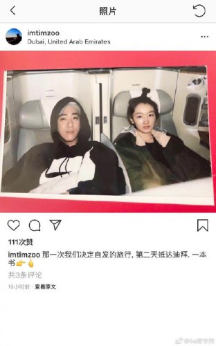 据悉,今日,有网友在迪拜机场偶遇周冬雨,而她和一名男子独自旅行,之后又有网友发现该名男子的某社交平台po出了自己和周冬雨的合照,周冬雨扎着丸子头,素颜出镜,显得十分可爱,该男子还写着:“那一次我们决定自发旅行,第二天抵达迪拜,一本书。”除此之外又有爆料称,这名男子是周冬雨团队请来的助教,两个人还和双方家人在一起过的新年。