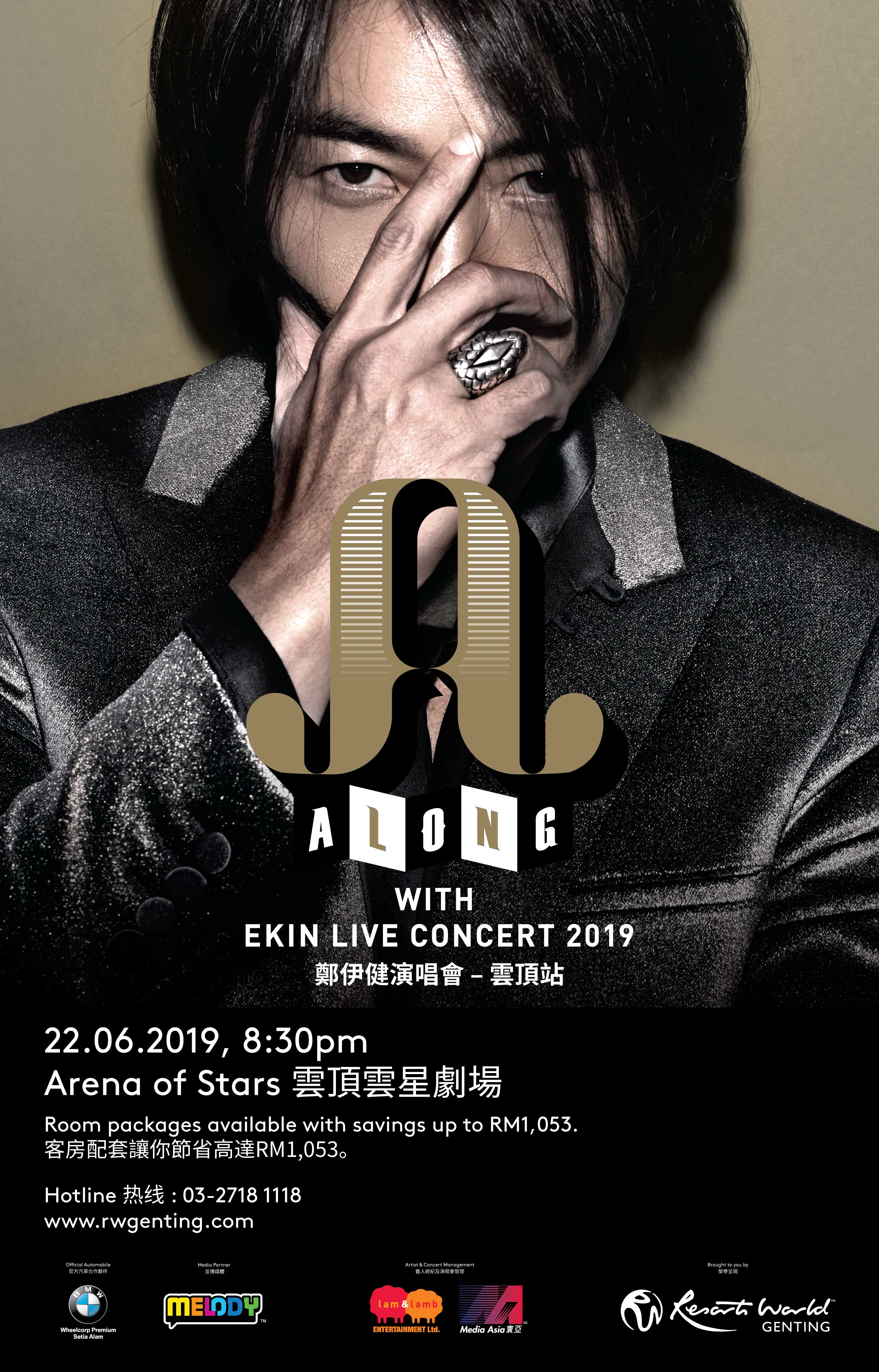 《郑伊健演唱会》即将于2019年6月22日在云顶云星剧场举办。门票已经开始发售,价格分别为546令吉(PS1)、396令吉(PS2)、266令吉(PS3)和166令吉(PS4);票价未包括4令吉手续费。通过云顶积分、信用卡或现金购票将获得10% 折扣(适用于PS1-PS3票位)。