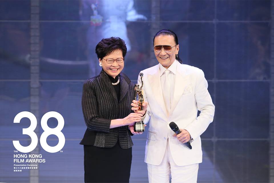 谢贤获颁终身成就奖。颁奖的是香港特首林郑月娥。