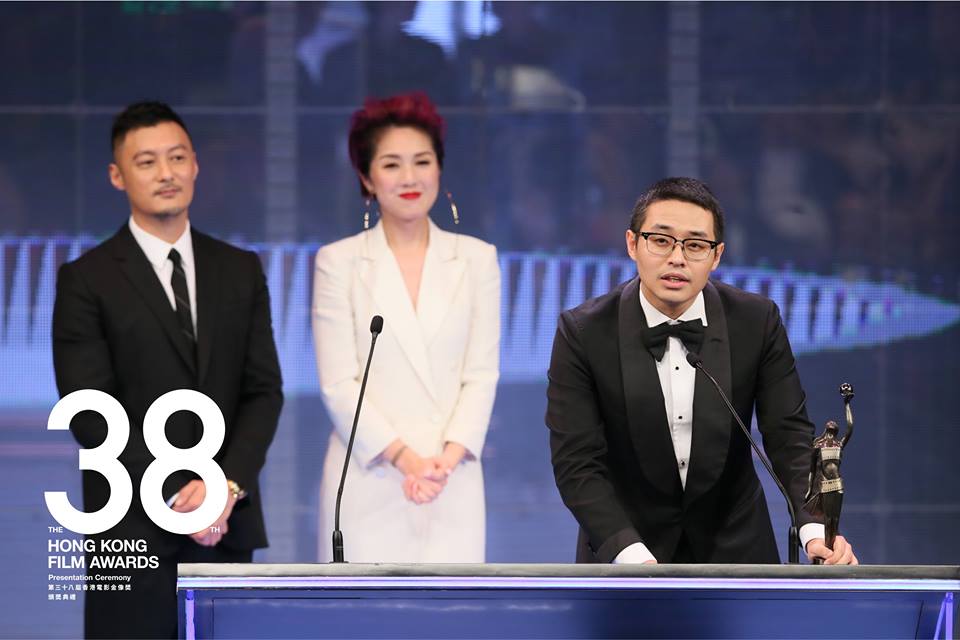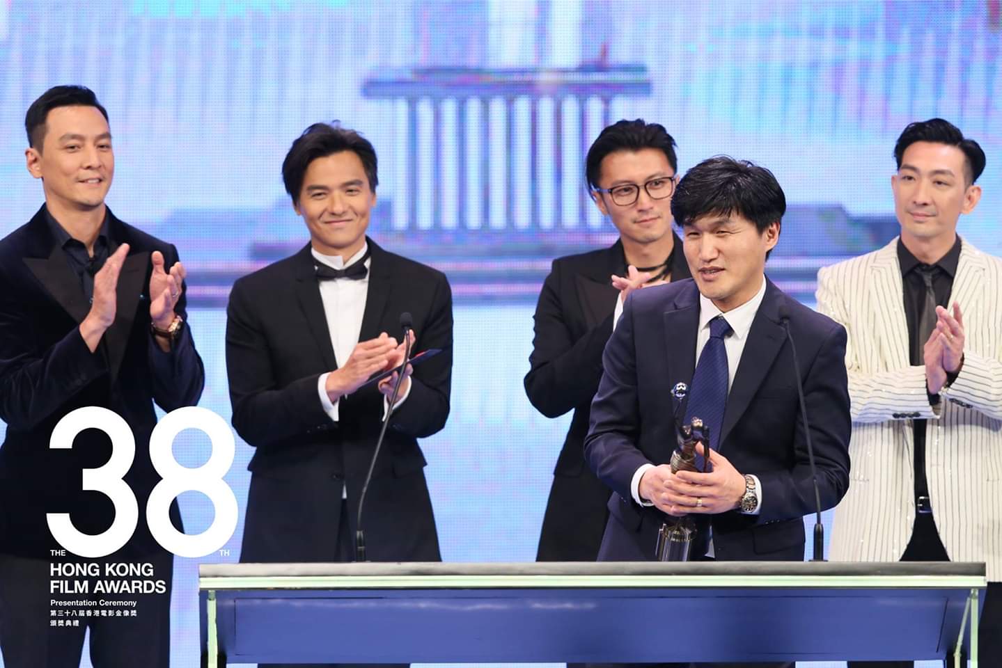 导演文牧野登台领奖发表感言:“很感谢金像奖把这个奖给我们这部电影,我要感谢我的两位监制,宁浩与徐峥。感谢金像奖,感谢香港,我是看香港电影长大的,基本上我有一半的电影知识是来自香港。”