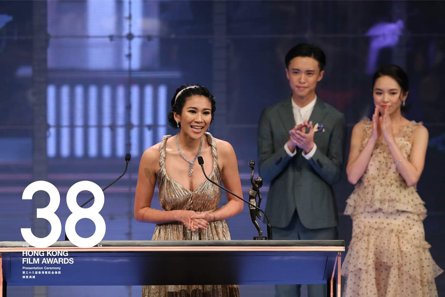 曾美慧孜在台上致辞感谢导演陈果、自己的母亲,也特别提及哥哥张国荣,称受到他很大鼓励,“看他的戏,我知道了戏比天大”。