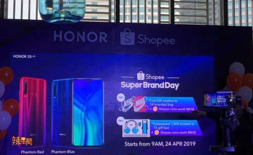 配合推介礼,HONOR将于4月24日在官网(hihonor.com/my)及Shopee电商平台推出独家促销!首500名在Shopee购买HONOR 20 Lite手机的用户,将可获得束带包及价值RM30的Shopee coins;之后的1000名用户则可获得HONOR礼盒及价值RM30的Shopee coins!与此同时,首50位在官网购买的用户,也可获得HONOR礼盒!