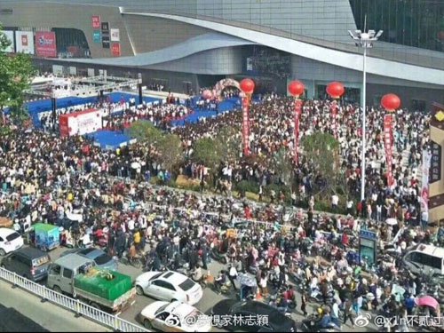 林志颖27在博贴出现场照,满满的人潮挤爆商场,有数名粉丝不顾自身安全,争先爬到树上,寻找好视野见偶像,场面濒临失控,原主办单位估计,约有1000人参加,没想到来了近6000人动,加上2道防线都被民众冲破,基于安全考量,不得不取消活动。