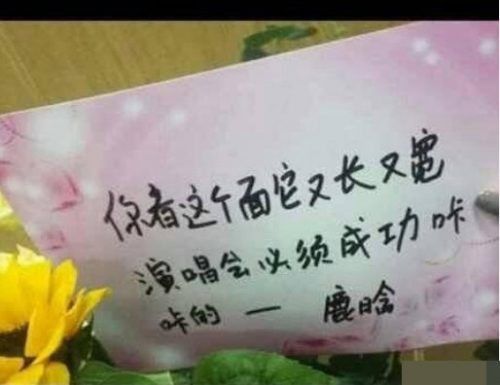 吴亦凡“天·地·东·西”2019巡回演唱会南京站即将开唱。现场有网友晒出鹿晗、黄子韬给吴亦凡演唱会送出的祝福卡片,分别写着“你看这个面它又长又宽,演唱会必须成功咔咔的”和“祝演唱会圆满成功,加油,就是干”。同时,4月20日也是鹿晗的二十九岁生日。20日下午,吴亦凡转发鹿晗的生日博并送上祝福:“兄弟生日快乐,新专辑好听”;随后,黄子韬也发布微博为鹿晗庆生同时给吴亦凡演唱会加油:“生日快乐,演唱会加油,兄弟祝福晚了对不起,我刚睡醒”。