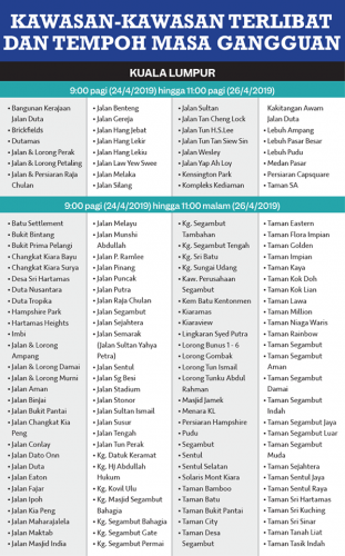 雪州水务管理公司发表文告指出,巴生、莎阿南、八打灵、鹅唛、吉隆坡、瓜冷和瓜雪县577个地区,共414万3465名水供用户将在4月24日至27日期间分批制水。