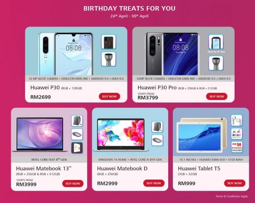 另外,4月29日将会有3次Flash Deals,时间分别为9am、12pm及3pm!想购买Huawei产品的朋友,记得提早做好准备哦!