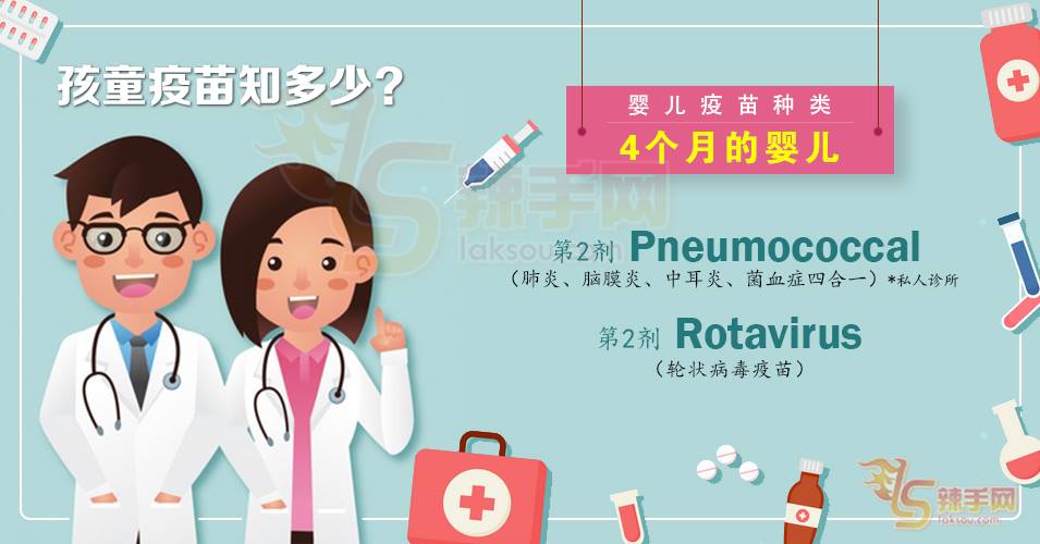 近期许多婴儿孩童容易感染肺炎,政府诊所也有提供这类的疫苗;若婴儿在2个月大时有在私人诊所注射Rotavirus,建议在4个月大时也继续注射。