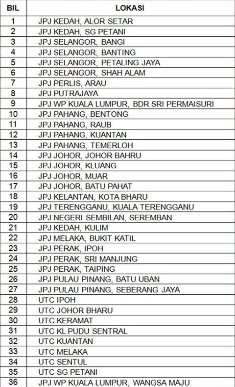 以下是设有陆路交通局自动服务机的地点,住在附近的民众可考虑使用。