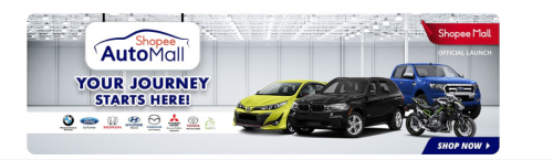 从Shopee AutoMall便可预订一辆全新的Toyota,BMW,Ford,Hyundai,Mazda,Mitsubishi轿车和摩托车。独一无二的Shopee AutoMall让用户可依家庭需求去购买各种各样的汽车和摩托车,如superbikes(超级摩托车),hybrids(混合动力车)和sport utility vehicles运动休旅车(SUV)。
