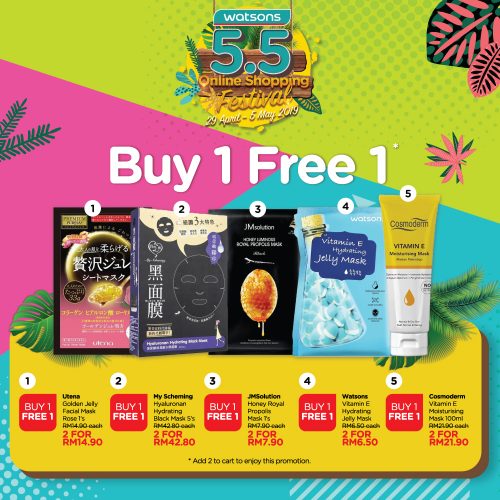 从即日起至5月5日,5.5 Online Shopping Festival将会推出三小时Flash Deal(8pm至11pm),所有产品的价格最低从RM5.50!当你购买指定产品,包括Bio-Essence、Biore、Cetaphill、Dove、Ensure、L’Oreal、Maybelline、NanoWhite、Pantene、Pure Beauty、Alia及Watson品牌等,可节省高达RM100!