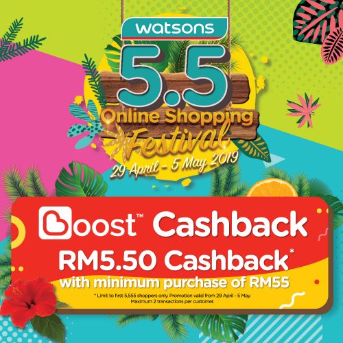 此外,使用Boost进行付款的顾客,在购买RM55产品的时候,更可获得RM5.50现金回扣!这项优惠只限首5555名顾客!