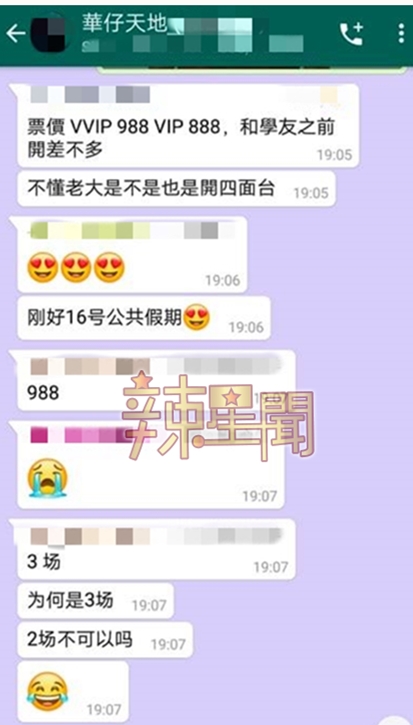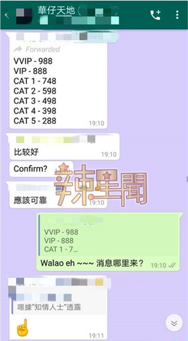 他也毫不讳言的告知媒体会在今年9月来马举办演唱会,消息一出已经让许多大马歌迷期待不已准备好抢票看“老大”,但确切的时间与地址一直还未公布,不料有读者爆料透露,华仔歌迷会群中意外传出大马场的场次和时间地点,甚至连所有票价也详细列明出来,在群组中疑似还有歌迷透露已经有人开始接收华仔门票代购呢!