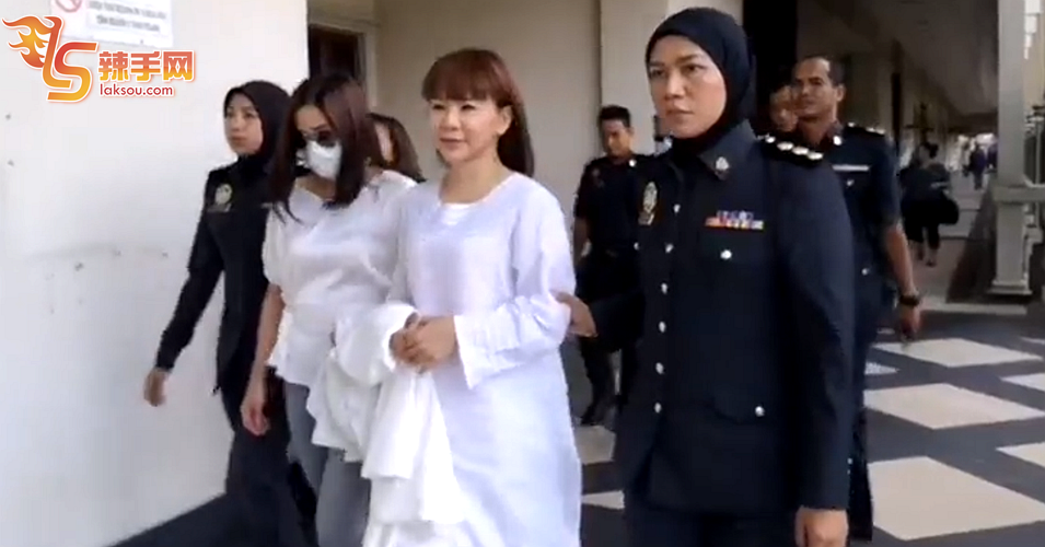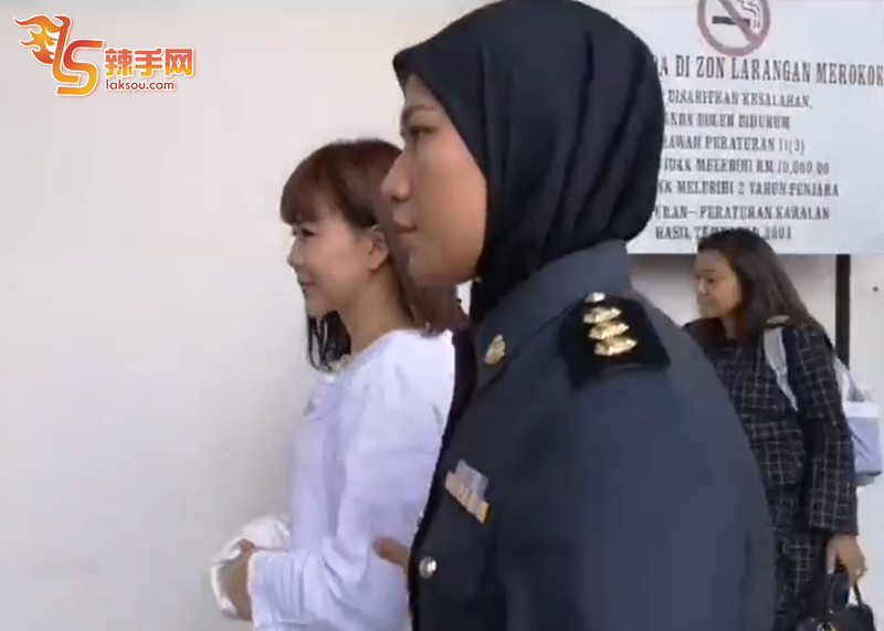 三人都被扣上手铐,两名女被告分别共扣一个手铐,并用白色外套遮盖着,至于男被告则双手放在背后用手铐扣着,同样也用西装外套遮住。