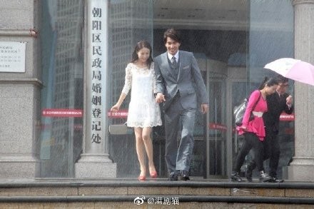 42岁言承旭升格人夫?现身中国民政局领证 11 May , 2019 | 娱乐前线 42岁言承旭与林志玲情缠16年,一度爆出复合,最后仍没结果,近来网路流出一组领证照,引起秘婚揣测。 言承旭西装笔挺现身民政局,他与一名身穿白洋装的长发女子十指紧扣,站在红色背板前高举结婚证,甚至还深情款款对看,最后再牵手步出民政局,幸福指数爆棚。 言承旭领证结婚照片曝光后,让网友感到心碎,有网友当起键盘柯南办案,查出照片女主角为34岁中国女星佟丽娅,照片其实是2人2014年合作电视剧《恋恋不忘》的剧照,乌龙婚讯吓坏许多网友。 分享