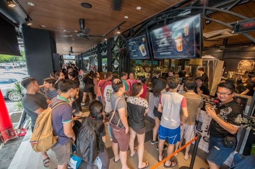 新店开张促销只限今日,时间从2pm至12am!想要提前尝鲜的朋友,可以去排队购买哦!