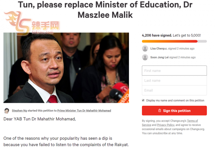 (吉隆坡19日讯)在上任11个月以来,频频宣布各种令人“匪夷所思”政策的教育部长马智礼,已令家长们“忍无可忍”,上网联署要求首相敦马哈迪开除马智礼!